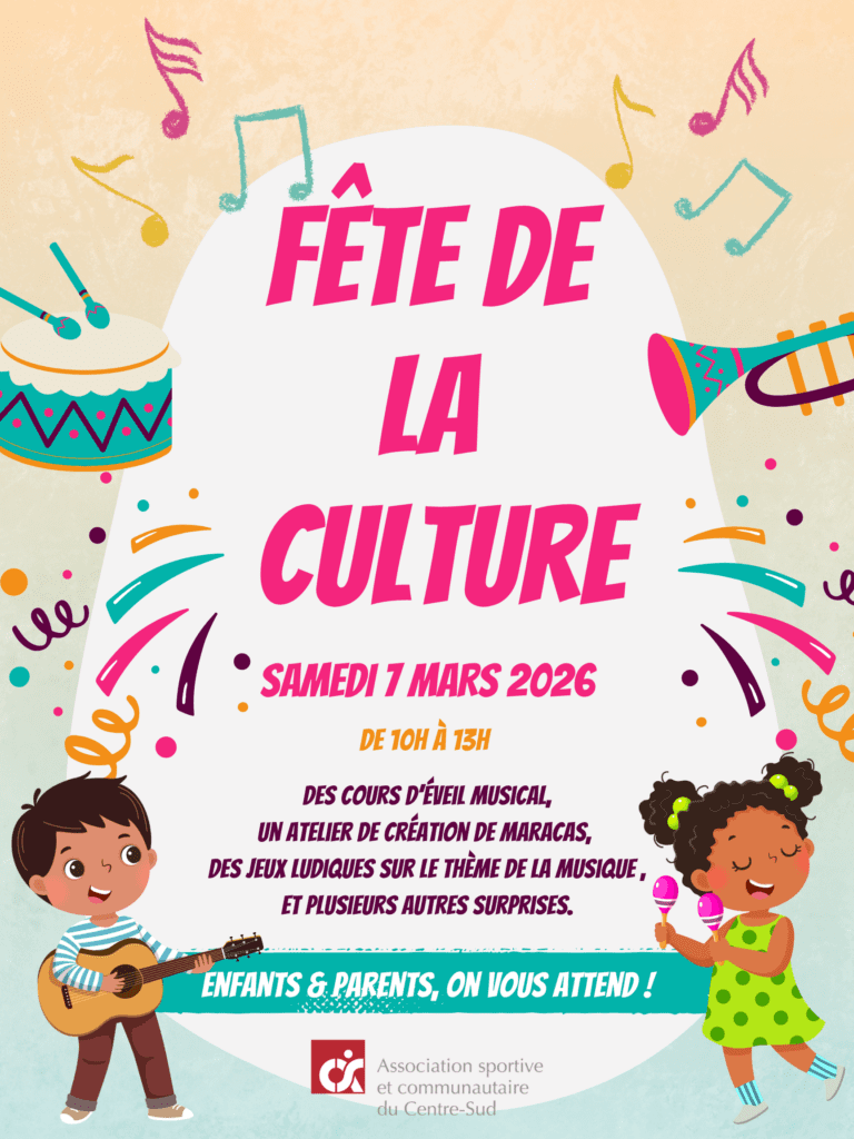 Vous êtes invités à venir célébrer la culture avec nous le samedi 7 mars 2026, de 10 h à 13 h, lors de notre Fête
