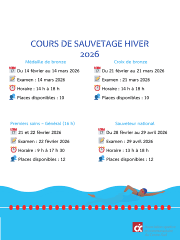 Cours de sauvetage Hiver 2026🏊‍♂️