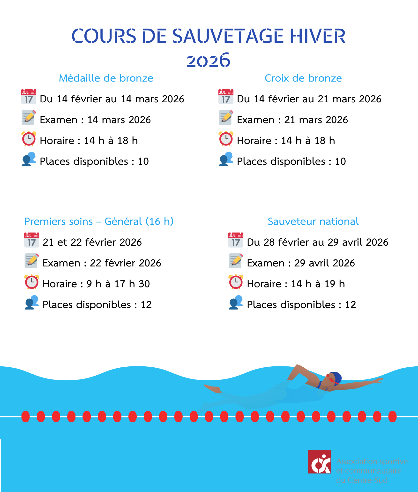 Cours de sauvetage Hiver 2026🏊♂️