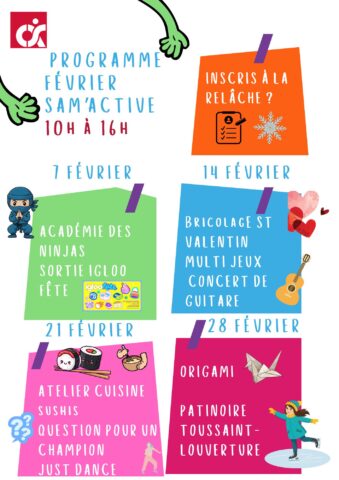 Les samedis, l’ASCCS propose aux enfants de 4 à 12 ans une journée d’animation de 10 h 00 à 16 h 00.